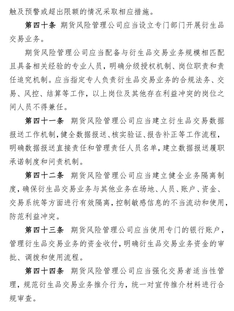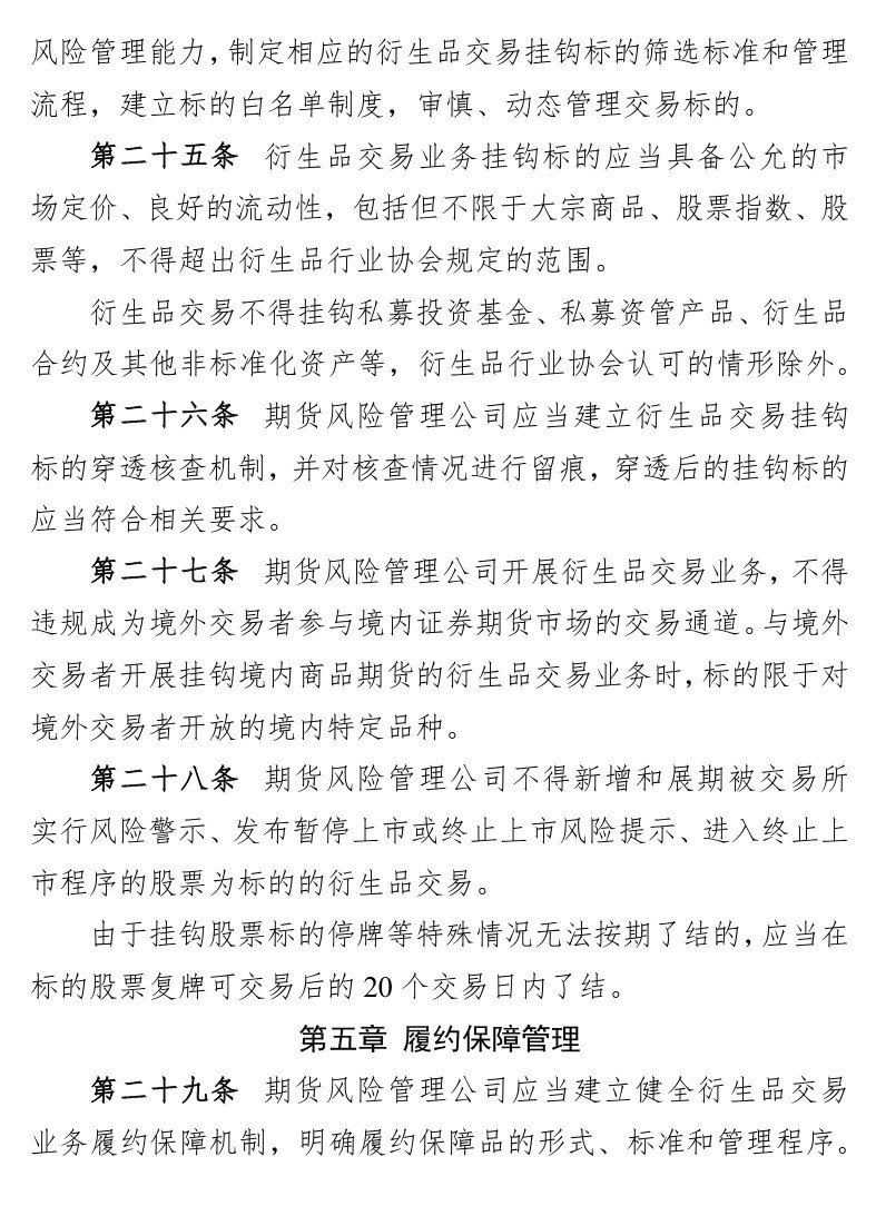规则特别强调了禁止期货风险管理公司与自然人直接或变相开展衍生品交易;产品参与衍生品交易的,应当合规设立,不存在份额分级安排。