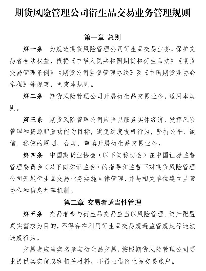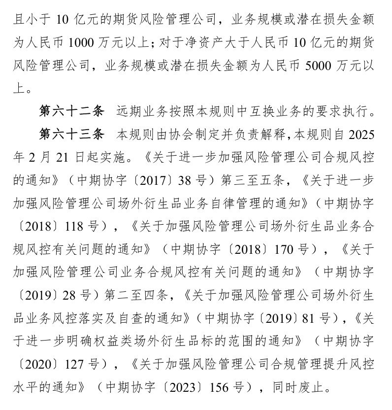 【大河财立方消息】2月21日,中期协发布《期货风险管理公司衍生品交易业务管理规则》。
